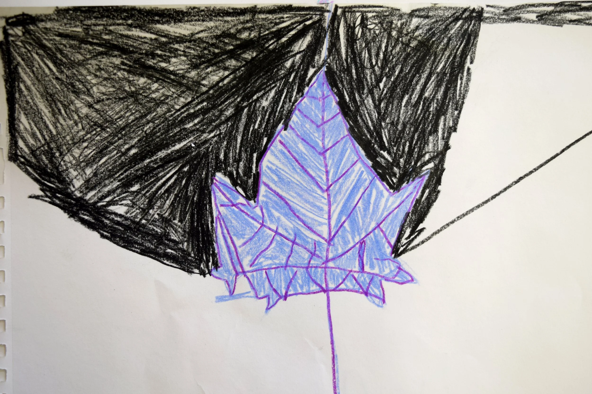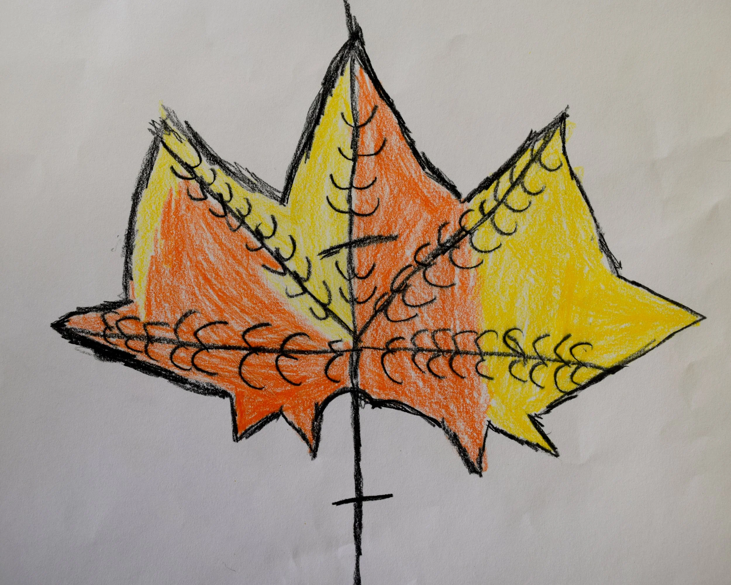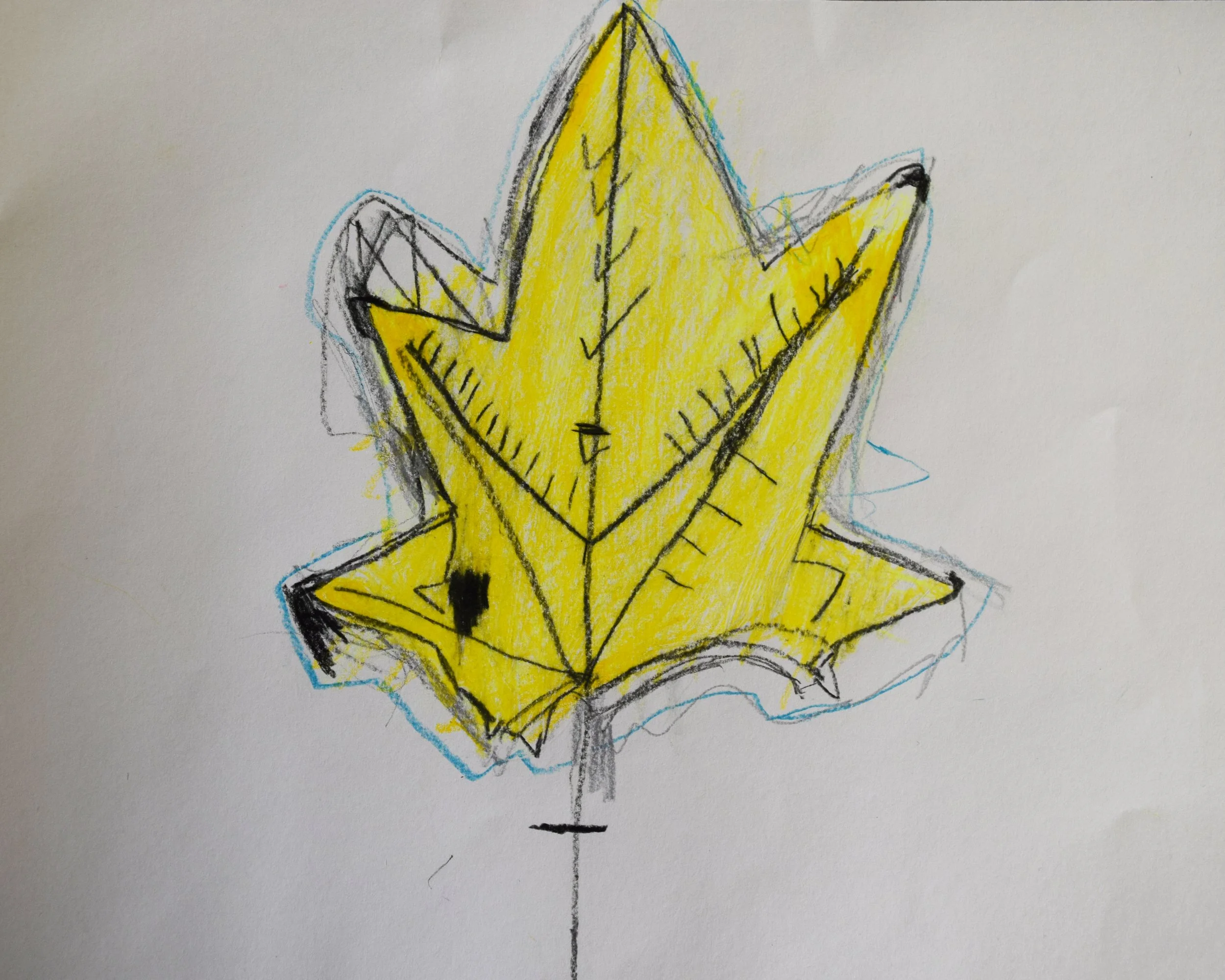All the students start off with the same handful of lines, yet in the end, each drawing is as unique as a signature. They are certainly all recognizable as leaves, but there is an explosion of colors, styles and techniques, as you can see in the gallery below.