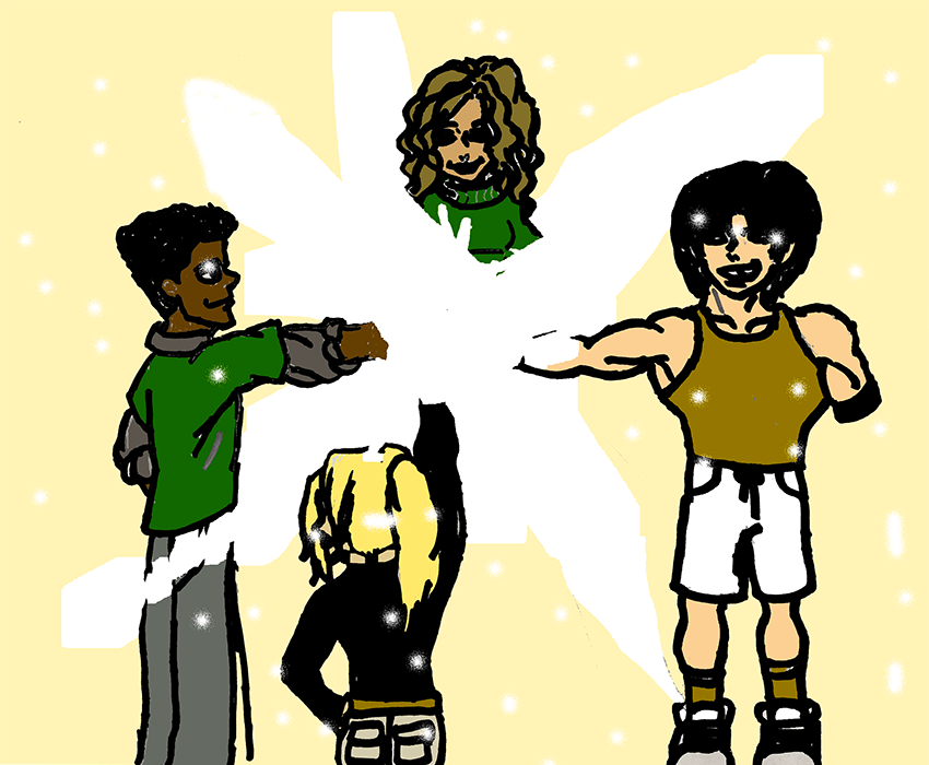 Graphic of people cleaning the city, done by interns at Liberty High School Academy for Newcomers