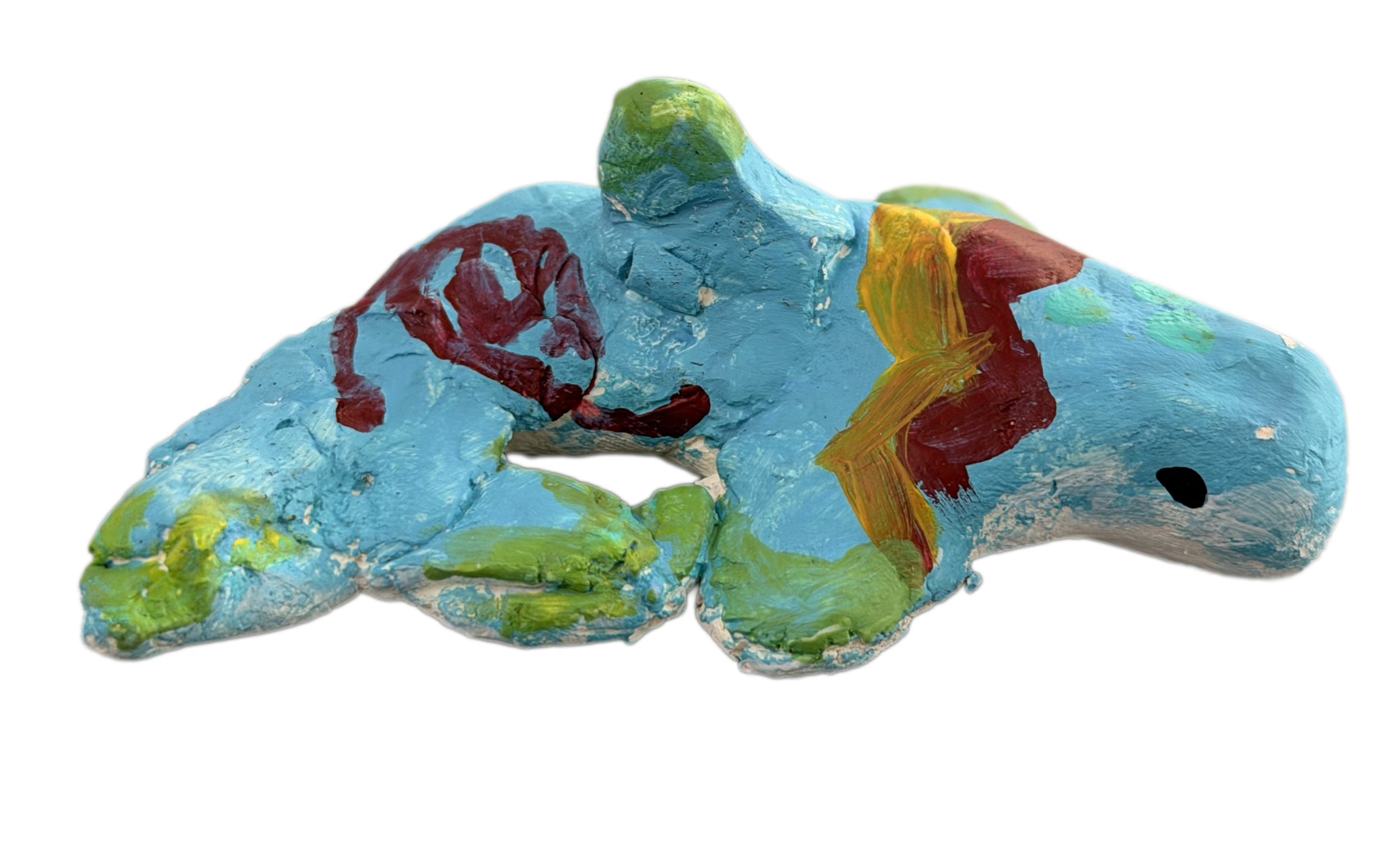 Students then tried their hand at creating their own stack sculpture using clay and paint. Some students, influenced by the animal and human forms featured in totems, chose to create people, monsters, dinosaurs, tigers, and even sea monsters. Others, inspired by the symbolic nature of inukshuks, created more abstract sculptures.